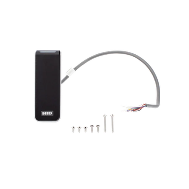 - Salida de datos: Wiegand y RS-485 semidúplex (OSDP) a través de cable flexible (18 pulgadas / 0.5 m) o regleta de bornes