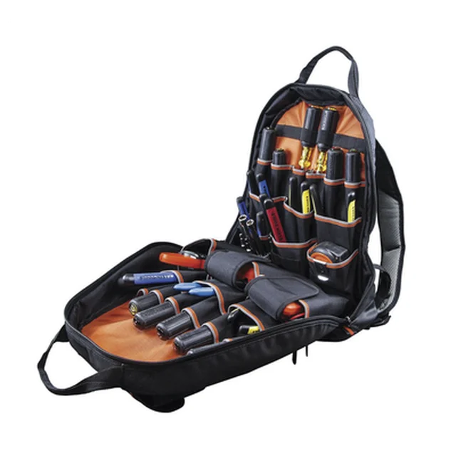 - Mochila para herramientas con 35 bolsillos de diferentes tamaños para facilitar la organización.