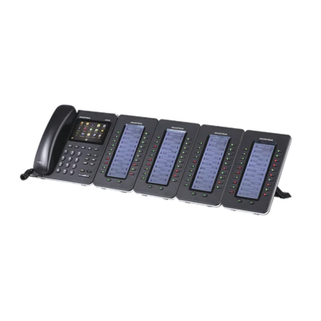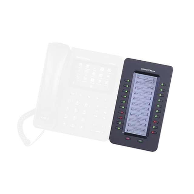El módulo de extensión GXP2200EXT es soportado por el GXP2140, GXP2170, GXV3240 y GXP2200. El módulo incluye 20 teclas de extensión de dos colores y dos teclas de flecha para cambiar de página, permitiendo a cada GXP2200EXT contar con hasta 40 extensiones. Tiene una gran pantalla LCD retroiluminada para fácil visualización. Se pueden conectar hasta 4 módulos GXP2200EXT para tener un total de 160 contactos/extensiones.