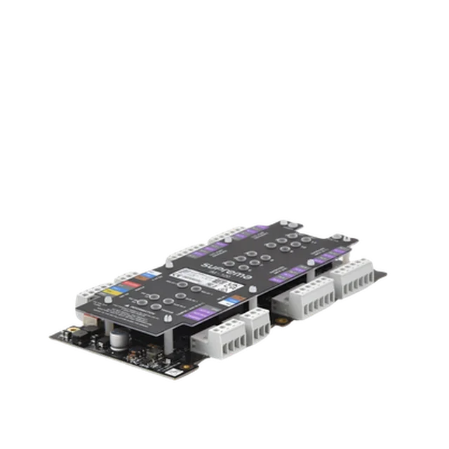 El modul de Entrads es un Modulo de Extencion de multiples entradas el cual puede controlar hasta 12 entradas supervisadas, 1 tamper switch y 2 relevadores. Un total de 31 unidades puedesn ser conectadas a un equipo Maestro via RS485 en conexion en cascada. Esto permitiendo usar las entradas para enlazarlas a sensores o contactos de puertas etc., y tambien como el brindar una sencilla interface de contacto seco a otros sistemas.