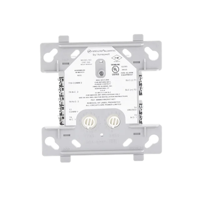 El módulo de relé CRF-300 de Fire-Lite proporciona dos salidas de relevador de forma C para activar una variedad de dispositivos auxiliares, como ventiladores, compuertas, soportes de puerta, equipos de control, etc.