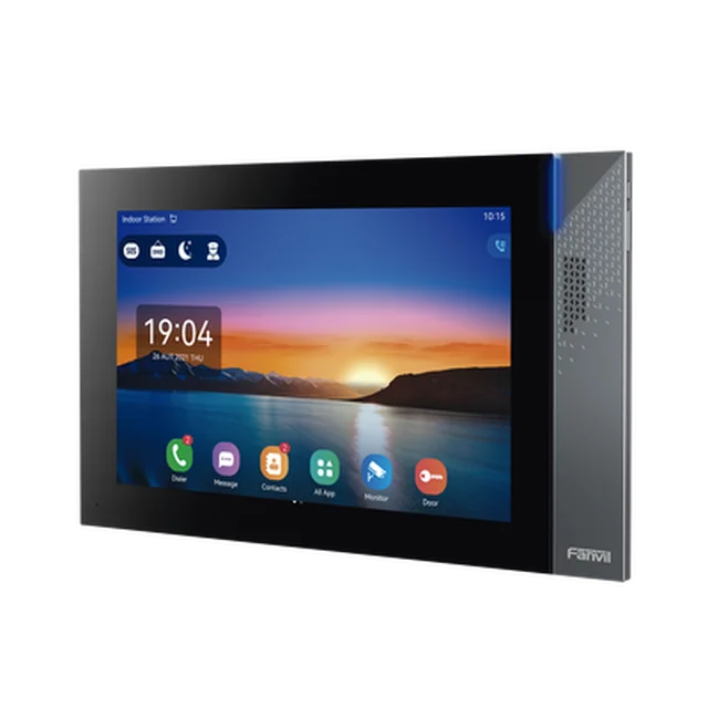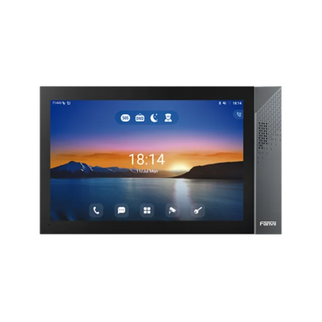 La estación interior Fanvil i57A cuenta con una pantalla táctil a color de 10.1 pulgadas con una interfaz de usuario intuitiva. Basado en el sistema operativo Android 9.0, cumple con las necesidades de personalización de aplicaciones de la industria y desarrollo secundario. Con potentes funcionalidades como apertura remota de puertas y monitoreo en tiempo real para dispositivos de seguridad, i57A sirve como asistente de administración para comunidades, villas y edificios de oficinas.