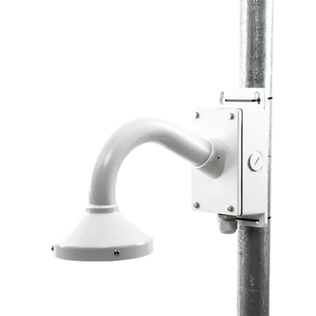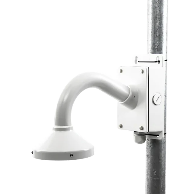 Montaje universal cuello de ganso para cámaras domo y bala, incluye la caja de conexiones robusta para instalación en exterior, el diseño del cuello evita que algun liquido regrese a la caja de conexión.