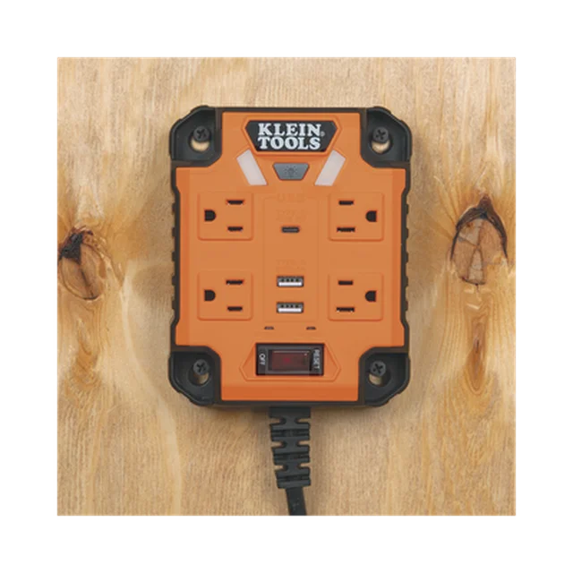 - Cuatro tomacorrientes de 120 V CA, dos puertos USB-A y un puerto USB-C con capacidad de suministrar energía para la carga rápida de teléfonos celulares, computadoras portátiles y otros dispositivos compatibles