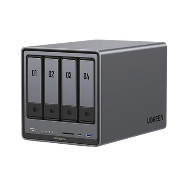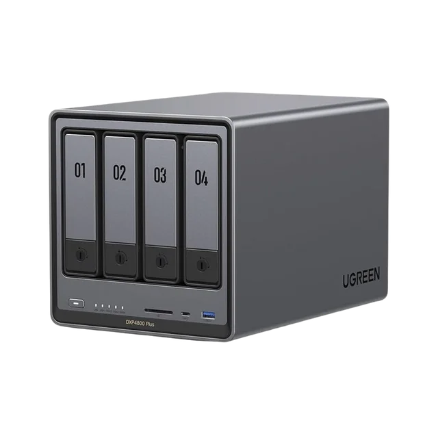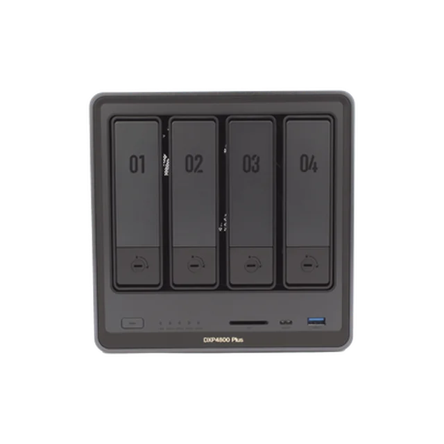 NASync DXP4800 Plus | SO UGOS Pro | Pentium Gold 8505 Intel® Core™ i5 | 4-Bahias (SATA) hasta 96TB | 2* M.2 SSD hasta 16TB | 8GB DDR5 (Exp. a 64GB) | 2 Ethernet | HDMI 4K | 2* USB2.0 | 1*USB 3.2Gen1 | 1* USB 3.2Gen2 | 1*USB-C 3.2Gen2 | SD 3.0