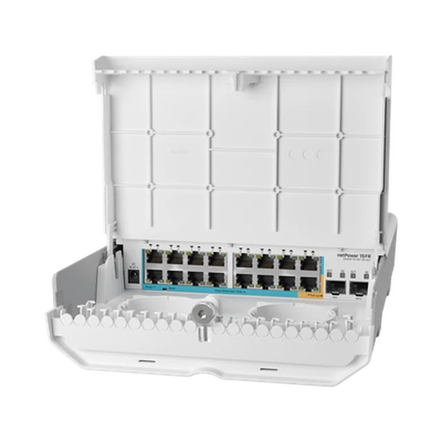 Hay dos puertos SFP para conectividad de fibra. El recinto para exteriores le permite instalar este interruptor en todo tipo de entornos, desde áticos húmedos hasta huecos de ascensores y diferentes postes con abrazaderas de manguera. netPower 15FR: ¡reduciendo el costo y aumentando la velocidad!