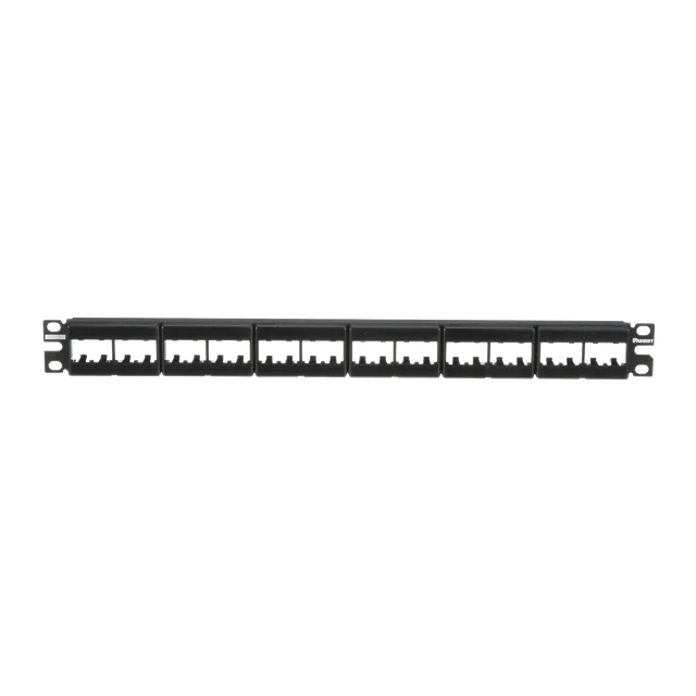 Panel de Parcheo Modular Mini-Com (Sin Conectores), Plano, Sin Blindaje, Con Etiqueta y Cubierta, de 24 puertos, 1UR
