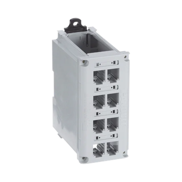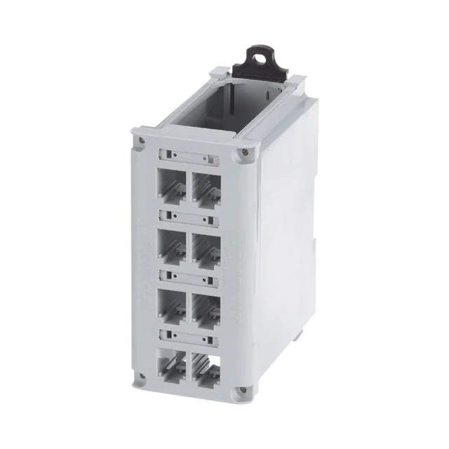 Panel de Parcheo Modular para Cobre, de Instalación en Riel DIN Estándar de 35mm, 8 Puertos Mini-Com, Color Gris