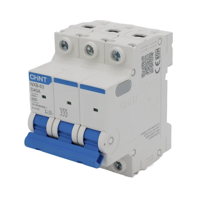 Pastilla para Riel Din, 3 Polos, 40 Amp, Vca:110/415v, 6kA, Catálogo: NXB633PD40, Serie: NXB-63.