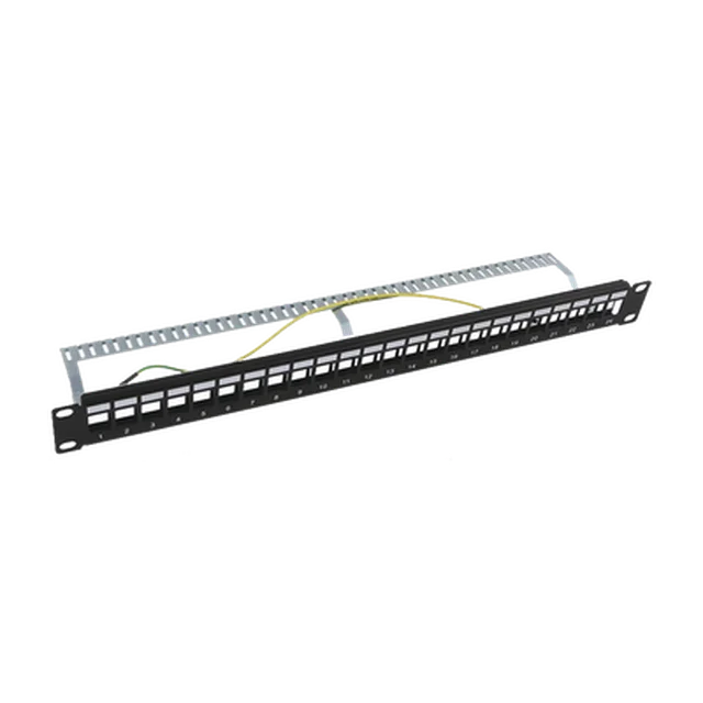 Patch panel modular Blindado (STP) de 24 puertos, con barra para organizar cable