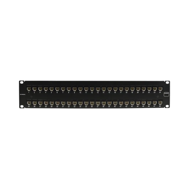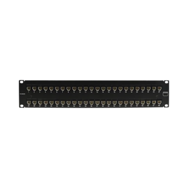 - Patch panel de 48 puertos con jacks precargados Cat6A.