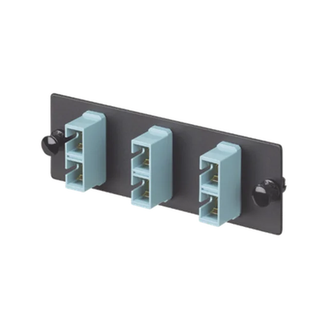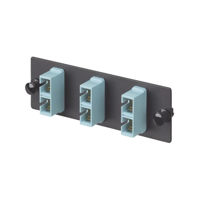 Placa Acopladora de Fibra Optica FAP, Con 3 Conectores SC Duplex (6 Fibras), Para Fibra Multimodo OM3/OM4, Color Aqua