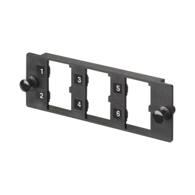 Placa Modular FAP de 6 Puertos Mini-Com, Acepta Módulos de Fibra Óptica, Cobre o Audio y Video, Color Negro