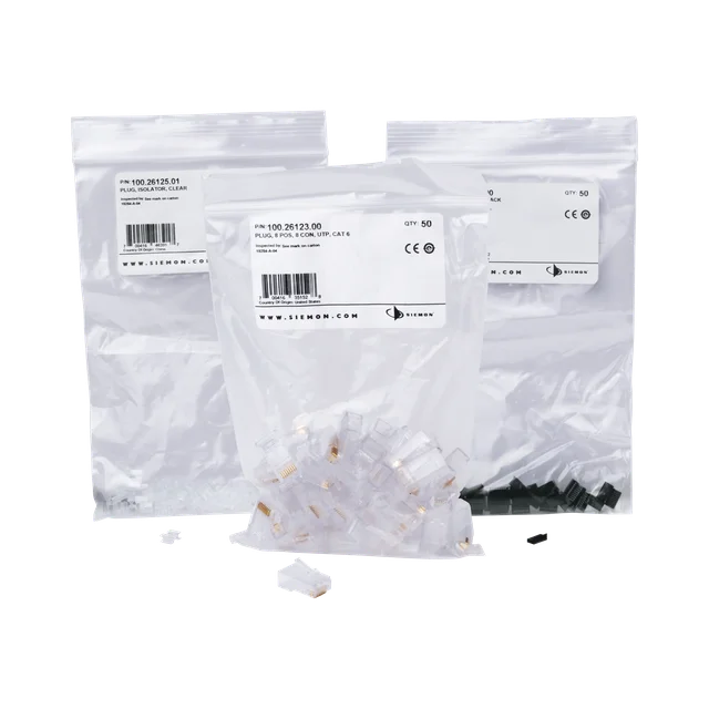 Siemon ofrece una linea de Plugs Modulares para parcheo, aplicaciones de área de trabajo y cableado a dispositivos finales. Los Plugs Modulares se pueden terminar a la longitud exacta del cable para mantener una instalación más ordenada y organizada. Todos los contactos del Plug tienen un mínimo de 50 micro pulgadas de chapado en oro sobre níquel y cumplen con las especificaciones TIA-1096 e IEC 60603-7.