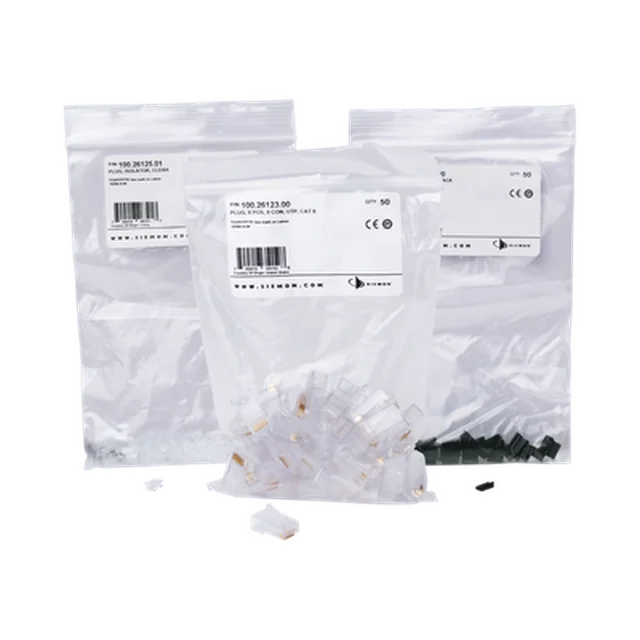 Plug RJ45 Cat6, Para Cable UTP Calibre 23 a 26 AWG, Chapado en Oro de 50 micras, Bolsa con 50 piezas