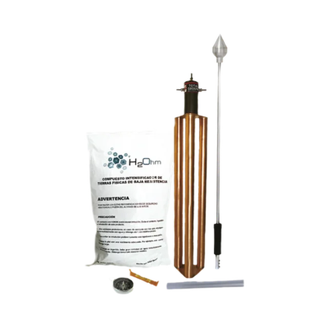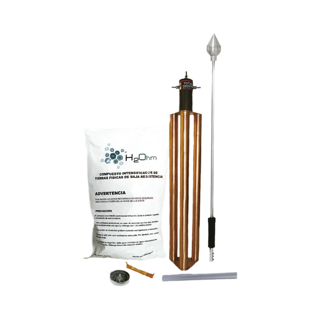 Punta Pararrayos para 80 m de Diámetro de Protección con Electrodo y Mejorador de Terreno.