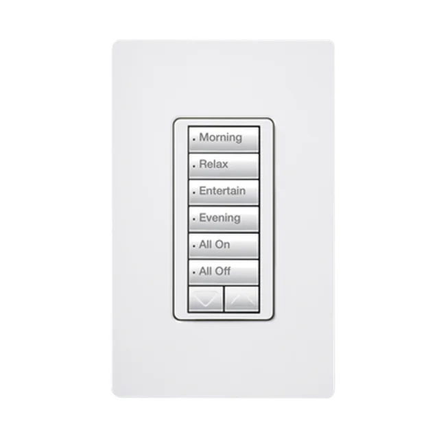 (RadioRA2) Teclado seetouch 6 botones, 2 botones subir/bajar, programe escenas diferentes en cada botón.