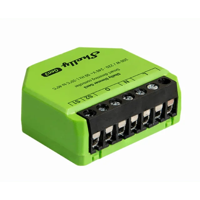 El regulador Shelly Gen3, con nuestro chip Shelly, ofrece un control de atenuación preciso y fiable. Funciona con o sin cable neutro y permite ajustar fácilmente el brillo mediante la app o con solo pulsar un botón. Con funciones como programación inteligente y modo nocturno, te ayuda a personalizar la atenuación según las horas del día y las actividades. Controla por completo tu iluminación regulable y mejora rápidamente la comodidad y la eficiencia.
