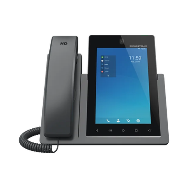 El GXV3470 es un poderoso videoteléfono de escritorio para empresas, que ofrece una solución integral de comunicaciones. Este videoteléfono IP brinda una experiencia eficaz gracias a su pantalla táctil capacitiva de 7 pulgadas con una resolución de 1280 x 800 pixeles, cámara inclinable de megapíxeles avanzados, micrófonos duales y soporte para videoconferencia HD. El GXV3470 incorpora dos puertos Gigabit con PoE/ PoE+, Wi-Fi 6 y soporte Bluetooth 5.0 integrados. También ejecuta Android 11 y ofrece acceso instantáneo a cientos de miles de aplicaciones para Android. Gracias a la combinación de un novedoso videoteléfono IP, una solución avanzada de videoconferencia y la funcionalidad de una tableta Android, el GXV3470 ofrece a las empresas de todo el mundo una solución eficaz de comunicación de escritorio y productividad.