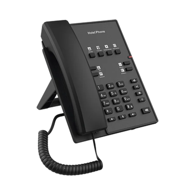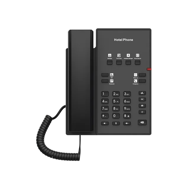 Fanvil H1 es un teléfono IP para hotel rentable, multifunción y elegante. Está equipado con 8 teclas de función programables para la línea directa de servicios, lo que cumple con los requisitos de aplicación de varios escenarios de hoteles. Además, H1 admite funciones como audio HD, puerto de red de 10/100 Mbps e integración PoE, brindando una experiencia de usuario de alta calidad y reduciendo el costo del hotel en el despliegue. Es más que un teléfono de hotel y también se puede aplicar en múltiples escenarios, como centros comerciales, hospitales y supermercados.