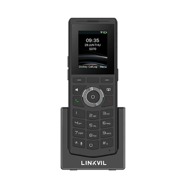 LINKVIL W610W es un teléfono Wi-Fi elegante y portátil diseñado para aplicaciones de comunicación móvil. Con doble banda incorporada botón para marcación rápida Además, integra Bluetooth 5.0 para emparejarlo con auriculares y dispositivos móviles. Instalado con una batería recargable de 1900 mAh. Wi-Fi de 2,4 GHz y 5 GHz, el W610W puede lograr una comunicación estable y eficiente en diversos entornos de redes inalámbricas, como empresas, centros comerciales y hoteles, brindando a los usuarios una experiencia de comunicación móvil de alta calidad.