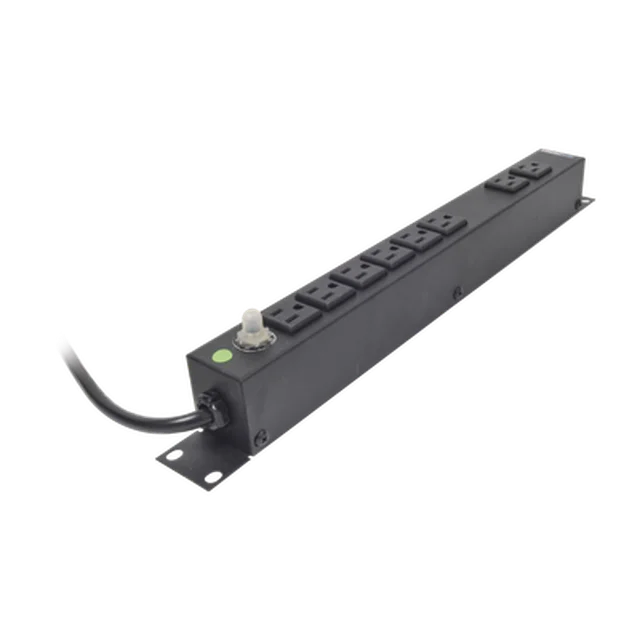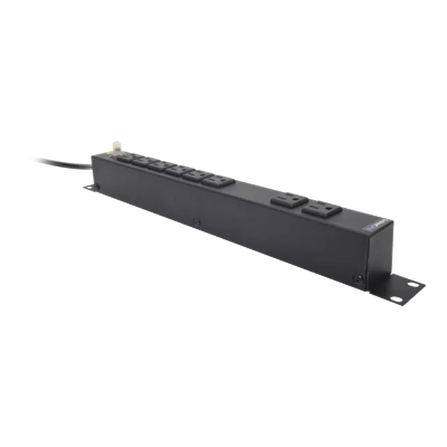 Tomacorriente Horizontal (PDU) de 8 Contactos (NEMA 5-15R) Rack 19″ 1UR. Voltaje Entrada/Salida: 120Vca/15A