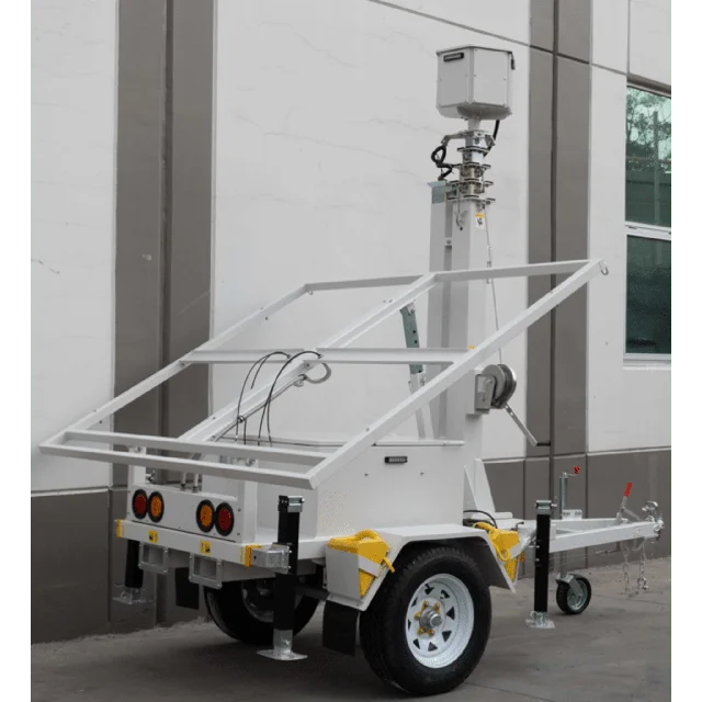 Traila / Remolque con Mástil Retráctil de 7.5 m. para Videovigilancia o Iluminación, con capacidad para Instalar Módulos Solares y Baterías (No incluidos)