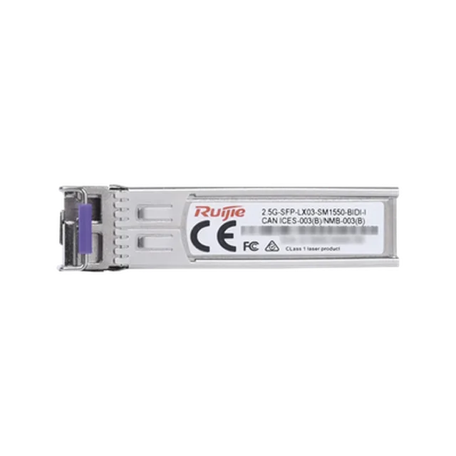 El 2.5G-SFP-LX03-SM1550-BIDI-I está alineado con las especificaciones ópticas IEEE 2.5GBASE-LX y admite una longitud de enlace de hasta 3 kilómetros a través de un SMF con un conector BIDI LC. Adopta el factor de forma SFP y opera a una longitud de onda de 1550 nm. El transceptor cumple con los estándares SFF-8431, SFF-8472 y RoHS.