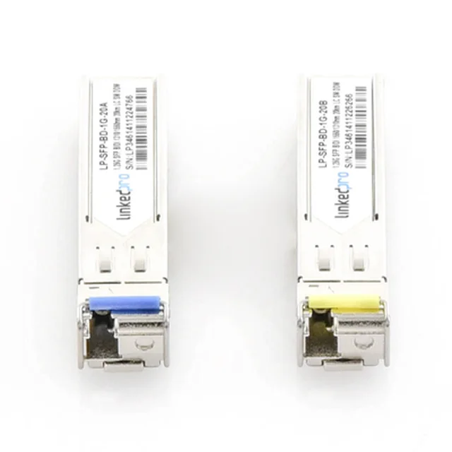 Transceptores Ópticos Bidireccionales SFP (Mini-Gbic) / Monomodo 1310 & 1550 nm / 1.25 Gbps / 1000BASE-BX / Conector LC/UPC Simplex / DDM / Hasta 20 km / 2 Piezas