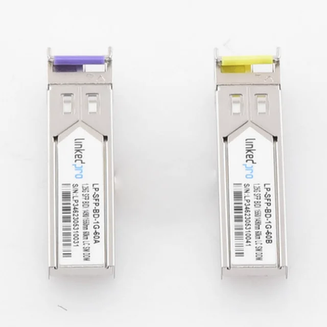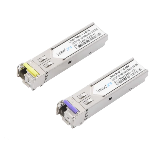 Transceptores Ópticos Bidireccionales SFP (Mini-Gbic) / Monomodo 1490 & 1550 nm / 1.25 Gbps / 1000BASE-BX / Conector LC/UPC Simplex / DDM / Hasta 60 km / 2 Piezas