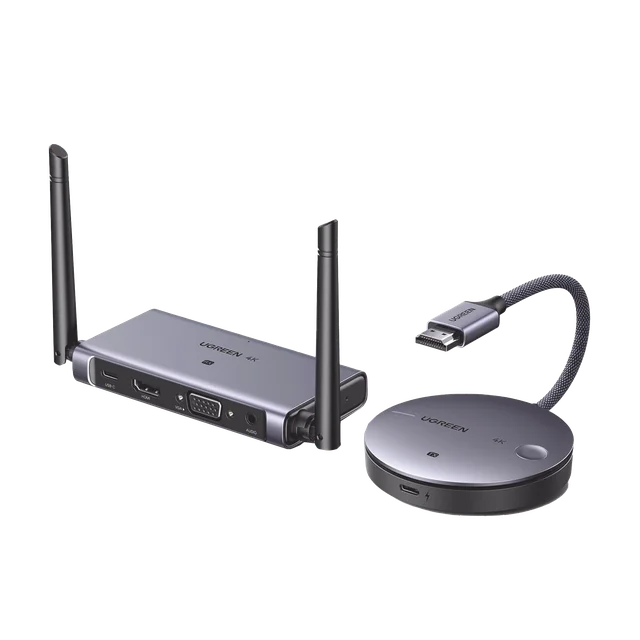 Transmisor y Receptor Inalámbrico HDMI | 50m | Salida HDMI y VGA (Simultanea) | Audio 3.5mm | Efecto 3D | Luz Indicadora LED | Clic and Go | Señal Estable | Amplia Compatibilidad | Conecta con un Clic.