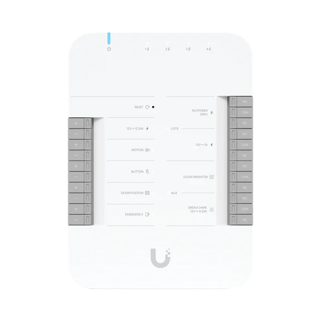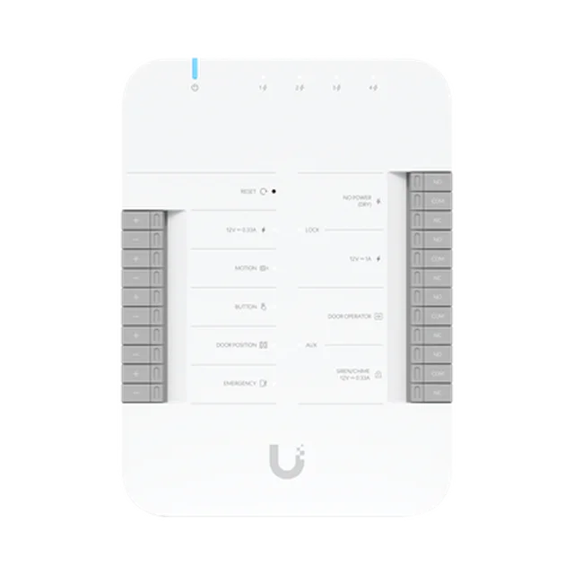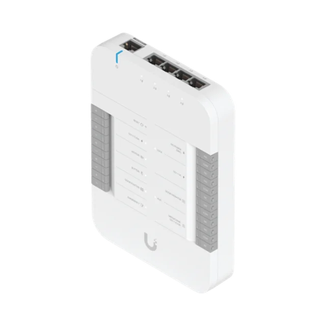 UniFi Access Hub Door, puede conectar 2 lectores y 2 cámaras (no incluidos) para controlar solo una puerta / 2 terminales AUX y 4 entradas adicionales (sensores y botones) POE 802.3bt no incluido