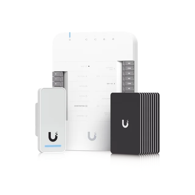 UniFi Access Kit de Inicio Gen 2, Incluye Hub para conexiones, lector NFC y movimiento / 10 tarjetas de acceso / sistema completo para abrir una puerta