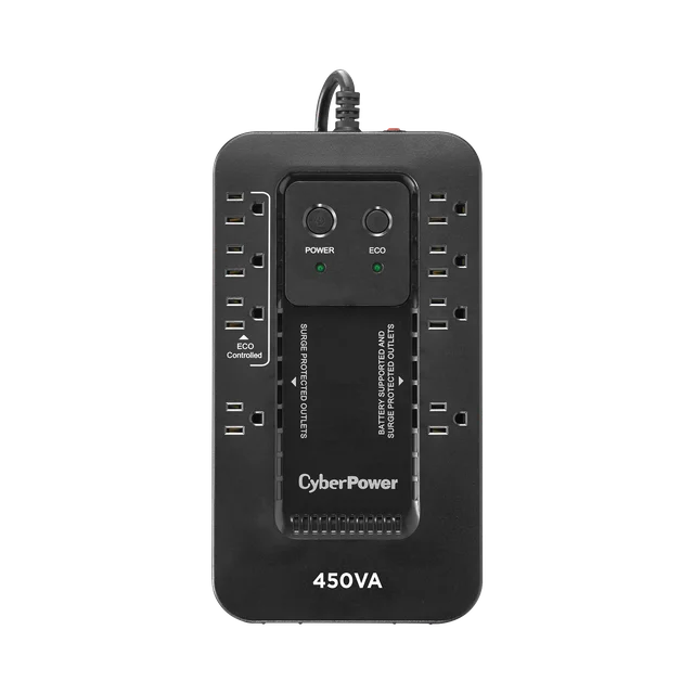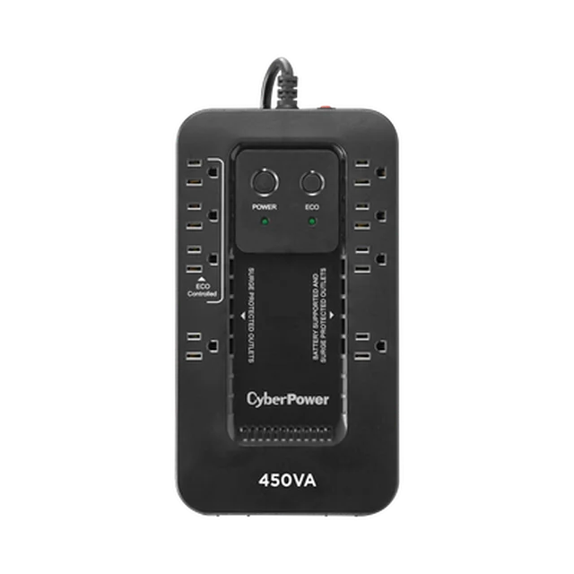 El EC450G salvaguarda PCs y otros equipos electrónicos de apagones, bajas y caídas de voltaje, picos y otras anormalidades de energía. Su circuito integrado ofrece protección de picos confiable y respaldo de batería durante interrupciones de energía. Este UPS utiliza un diseño de alta eficiencia GreenPower UPS™ para reducir consumos de energía y además está calificado por ENERGY STAR®.