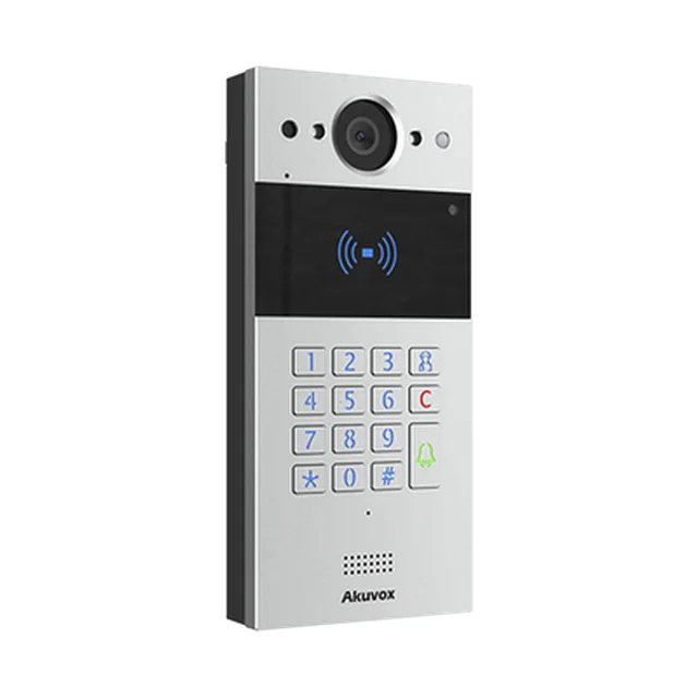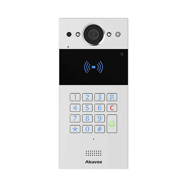 Videoportero SIP / Teclado y Lector de Tarjeta / Notificación App / Notificación Llamada Telefónica / Configuración en la Nube / POE / IP65 / Cámara de 2 MP / NFC / PIN Temporal para Visitas / Control de 2 Puertas