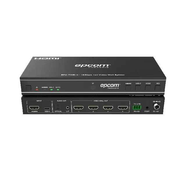 Videowall 4K 1×4 | HDMI & USB-C | 8 Modos de Visualización | Audio Óptico/Analógico | Control RS-232/IR | Plug & Play