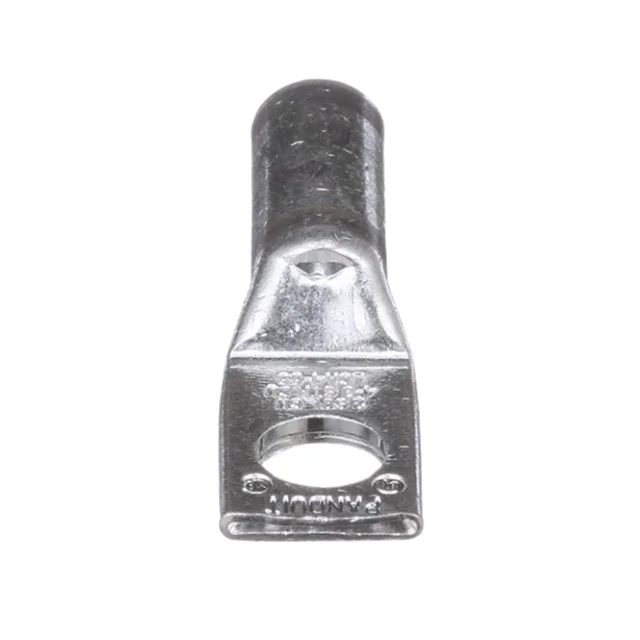 Talón de compresión de cobre estañado LCA4-56-L, un orificio, tambor estándar, tambores codificados por color marcados con números de índice de dado de Panduit y de un competidor especificado para la adecuada selección de dados. Una mirilla de inspección ayuda a comprobar visualmente la inserción total del conductor, y el material estañado previene la corrosión. Listado UL y certificado por CSA para 35 KV y con calificación de temperatura hasta 90°C.