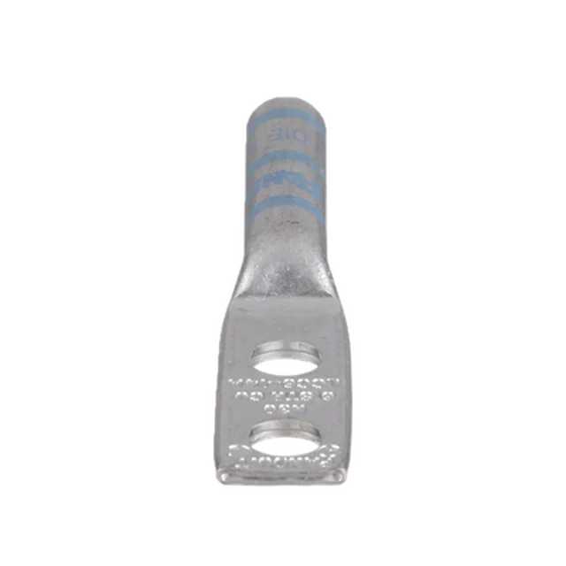 Zapata de compresión LCC6-14A-L para cal. 6 Awg, Doble barreno para tornillo prisionero de 1/4, Espaciado de orificio 16mm, 1 Pz