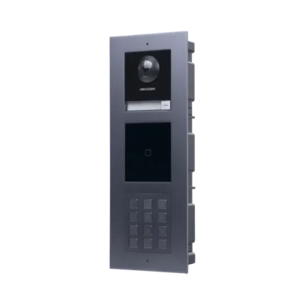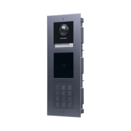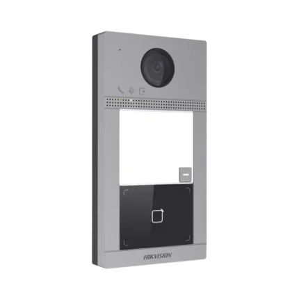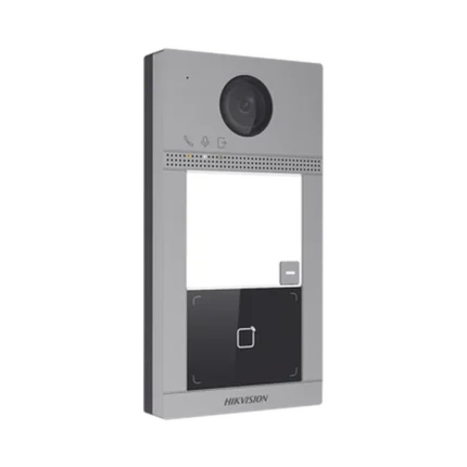 Videoportero IP 2 Megapixel / Llamada y Apertura Remota desde App Hik-Connect / PoE / Exterior IP65 + Antivandalico IK08 / 1 Departamento / Apertura con Tarjeta / Soporta 2 Puertas y hasta 6 Monitores