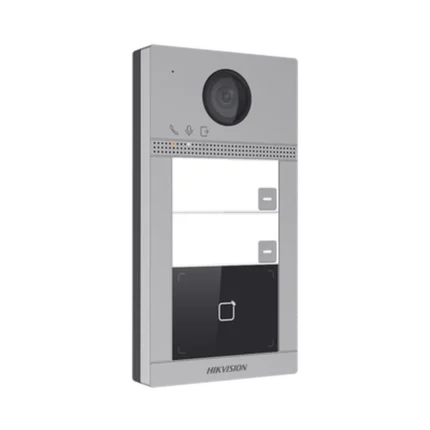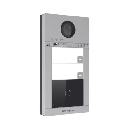 Videoportero IP 2 Megapixel / Llamada y Apertura Remota desde App Hik-Connect (requiere monitor) / PoE / Exterior IP65 + Antivandalico IK08 / 2 Departamentos / Apertura con Tarjeta / Soporta 2 Puertas y hasta 6 Monitores