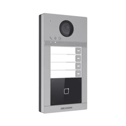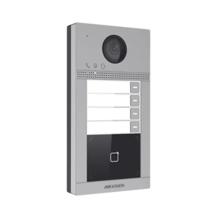 Videoportero IP 2 Megapixel / Llamada y Apertura Remota desde App Hik-Connect (Requiere monitor )/ PoE / Exterior IP65 + Antivandalico IK08 / 4 Departamento / Apertura con Tarjeta / Soporta 2 Puertas y hasta 6 Monitores