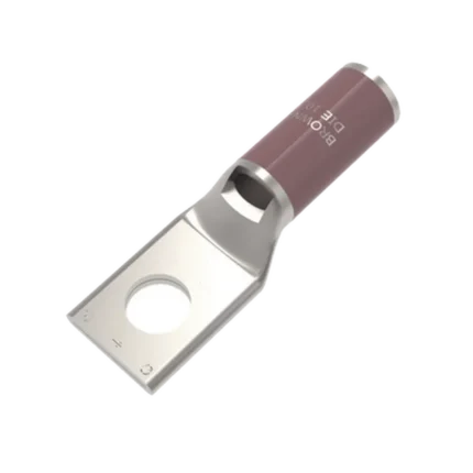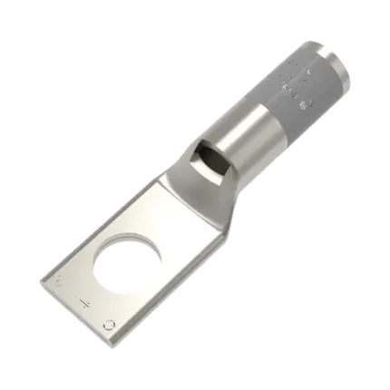 Zapata Terminal de Compresión de Cobre Electrolítico Estañado de Cañón Corto para Tornillo de 1/2″ y Calibre 2 AWG.